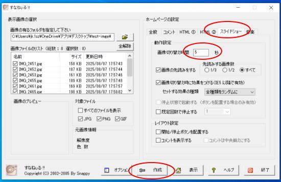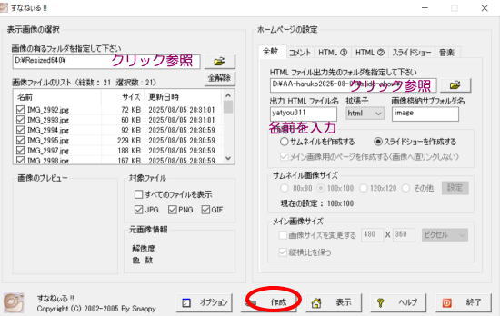 準備した画像ホルダーを参照で選択する。 (640px x 480px)