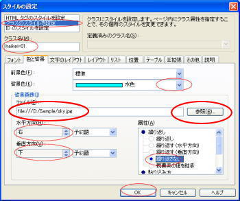 ◆ ヘッター部分の背景色と画像は、スタイル設定で挿入します。