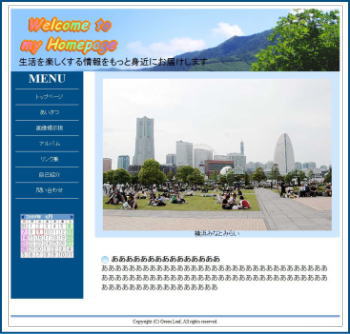 ただし、サイドバー上のメニューは横幅が大きく変わると使いにくくなるので、サイドバーだけは横幅を固定して表示します。スタイル設定は、ヘッターの背景と、サイドバーのメニューと、フッターに使用します。その他の部分は前回と同じく表とセルを利用してデザインしています。コンテンツ内のスタイルは前回通りの設定です。