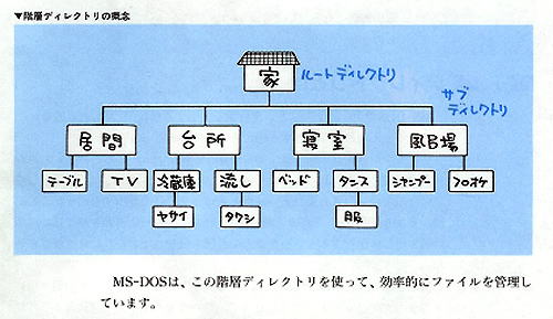 ◇ディレクトリという言葉を説明する前に、私達の身近なところでたくさんさの書類を整理する場合を考えて見ましょう。書類には、その用途、性質によっていろいろなものがあります。こっれらす べてを一つの引出に保管していたのでは、必要な時にすぐに取り出すことが、難しくなるでしょう それを回避するためには、用途別に書類を整理して別々の引出に保管すると言ったことを、普段か らやつておらなければなりません。Windowsでは、この書類一枚一枚がファイル、キャビネット の引出一つ一つがディレクトリにあたります。さらにキャビネット自体はドライブと言うことです
