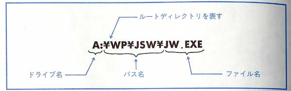 | ◇パス名 パス名とはディレクトリ名を「¥」で区切って並べた物です。カレンディレクトリ以外にある ファイルを指定する場合には、ファイル名の前にパス名を付けなければなりません |