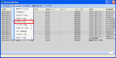 BlackJumboDog を起動して、[オプション]−[FTP サーバ]を選択します。