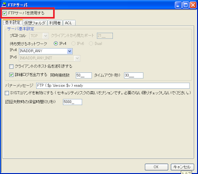 そして起動した「FTP サーバ」画面で、「FTP サーバを使用する」にチェックを付けます。