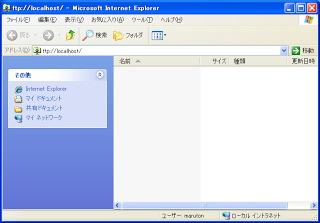 ブラウザでアクセスする場合には「ftp://maruton:password@localhost」です。(1個目がアカウント名、2個目がパスワード、3つ目はアドレス)