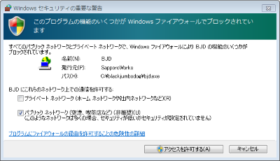 BlackJumboDog の通信を許可するかどうか尋ねられますので