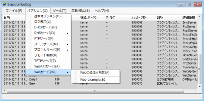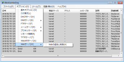 オプション -> Webサーバ -> 上記で設定したウェブサーバが表示されていますのでそれをクリックします。