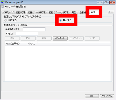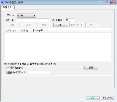 オプション -> Webサーバ -> Webの追加と削除 をクリックします