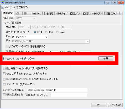 ルートディレクトリ( HTML が保存されているフォルダ)を指定します