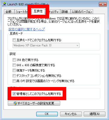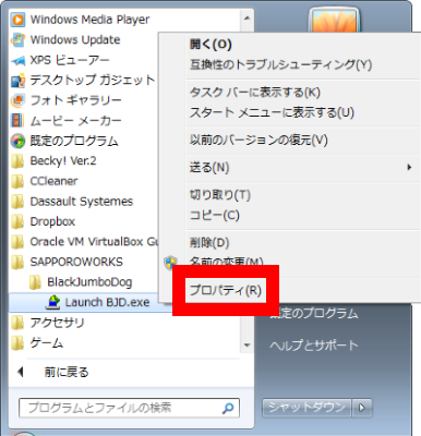 Launch BJD.exe を右クリックして表示されるコンテクストメニューの